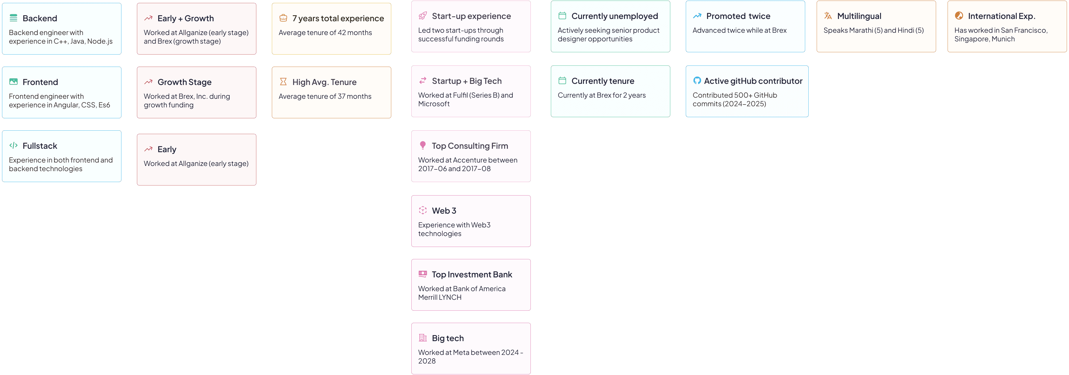 We noticed that recruiters felt the highlights on candidate cards were too generic and all in one color. Signals like years of experience or company names didn’t help them make quick judgments.