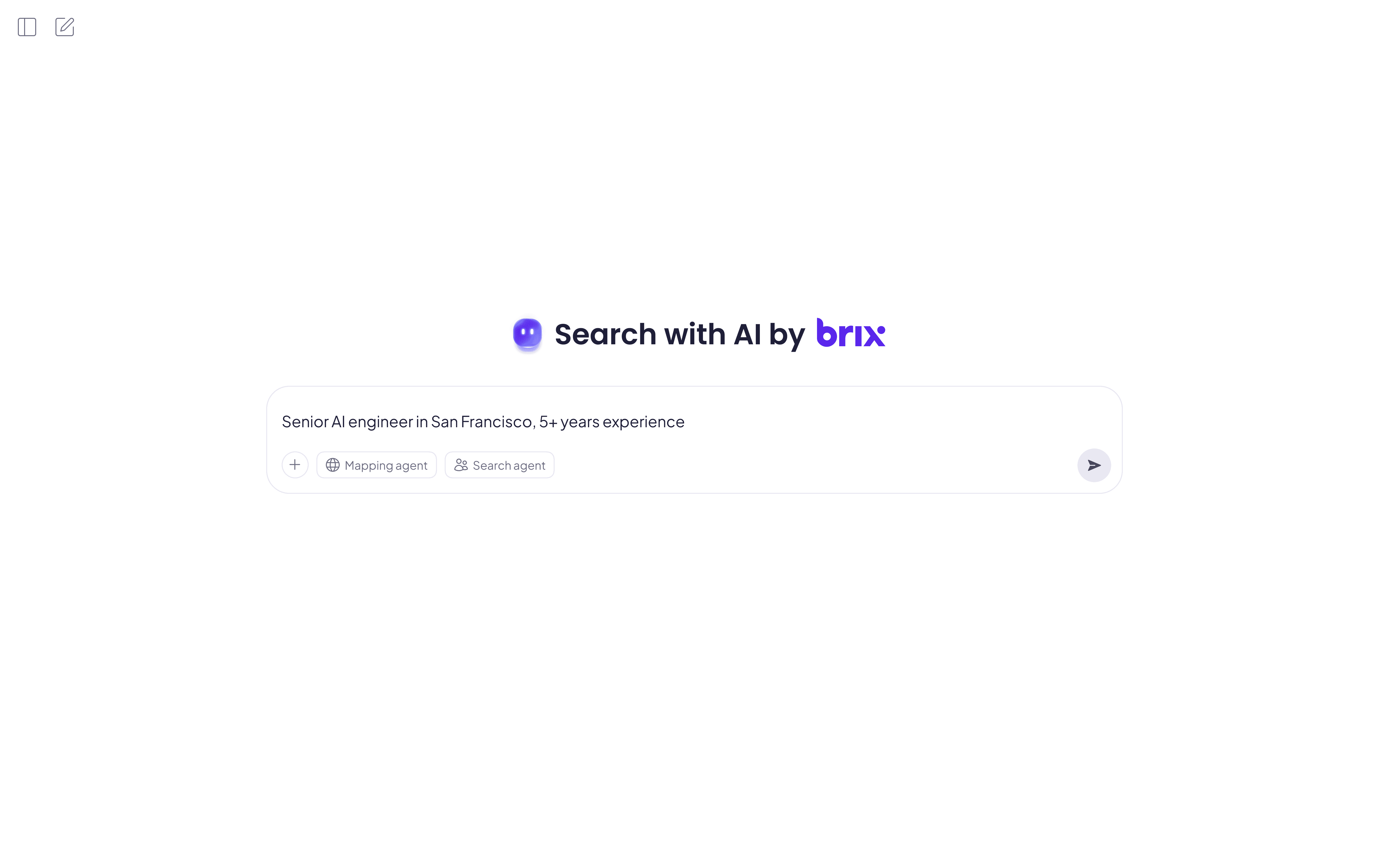 We reframed Brix with a persistent chatbox and agent-led workflow, replacing cluttered filters with two clear modes and repositioning the panel to emphasize visual centrality—distinguishing it from SaaS competitors and aligning with our goal of a true AI agentic recruiting tool.