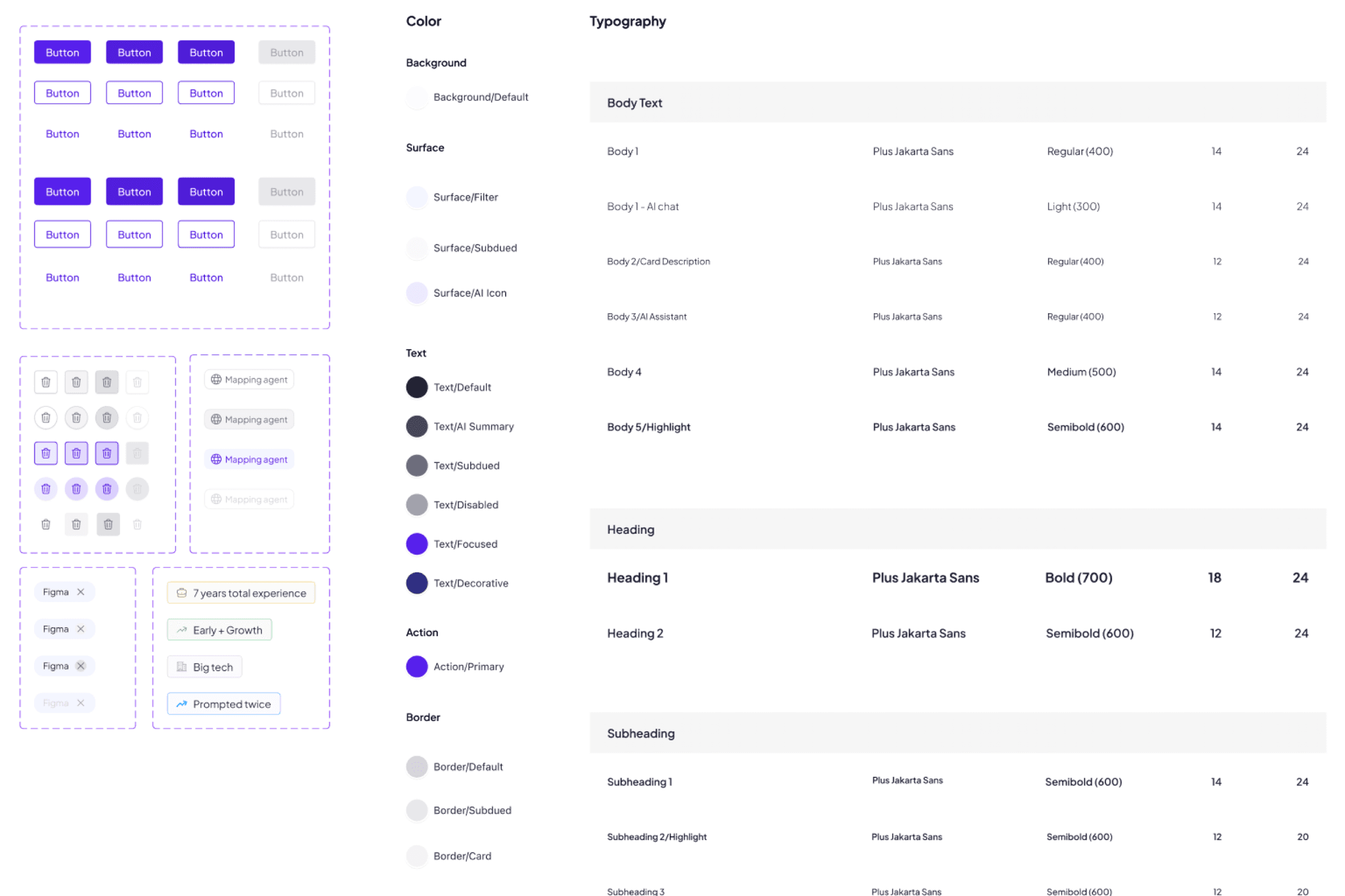 In the first round of user testing, we noticed that recruiters felt the highlights on candidate cards were too generic and all in one color. Signals like years of experience or company names didn’t help them make quick judgments.