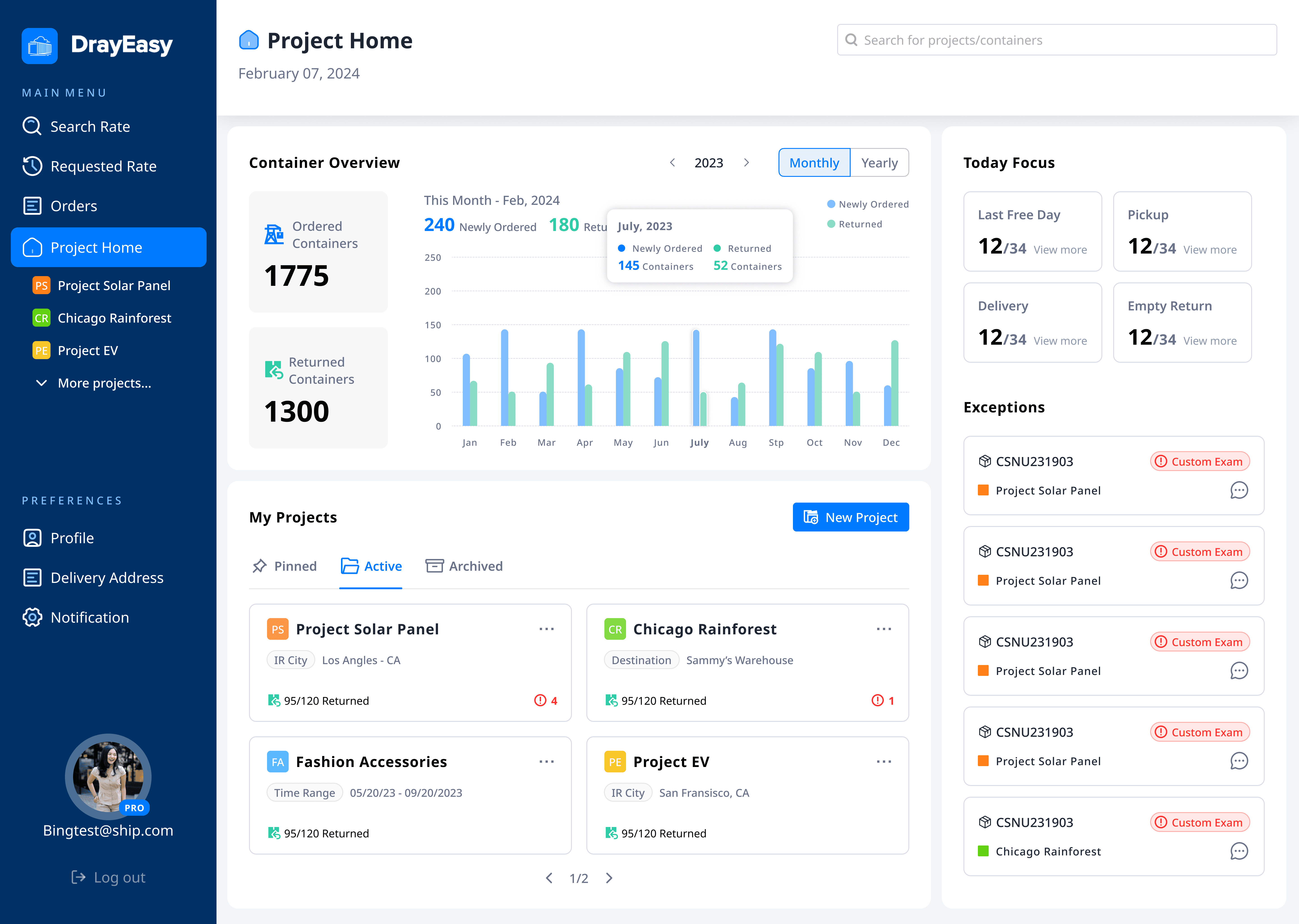 DrayEasy is a logistics SaaS platform that leverages AI and big data to provide real-time quoting, booking, and tracking for shipments. I redesigned dashboards and design system to fix clutter layout and inconsistent visuals, creating a cleaner, scalable interface.